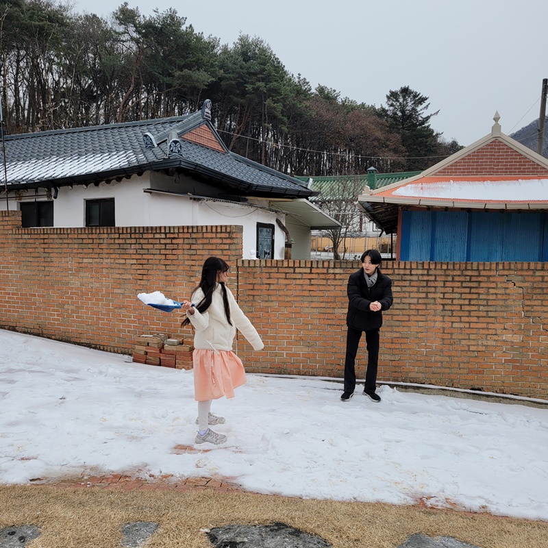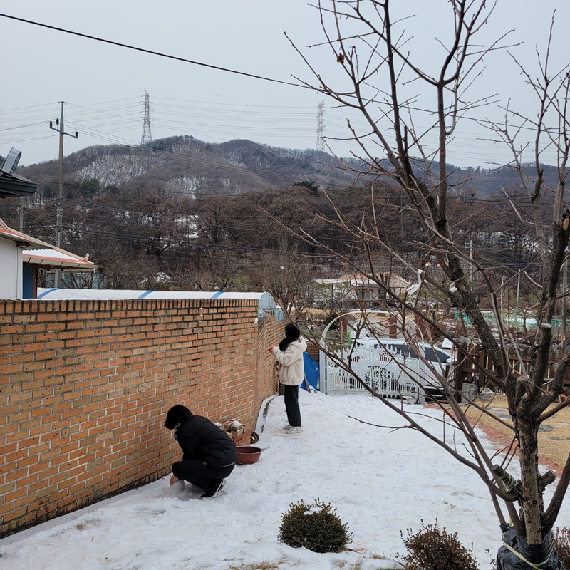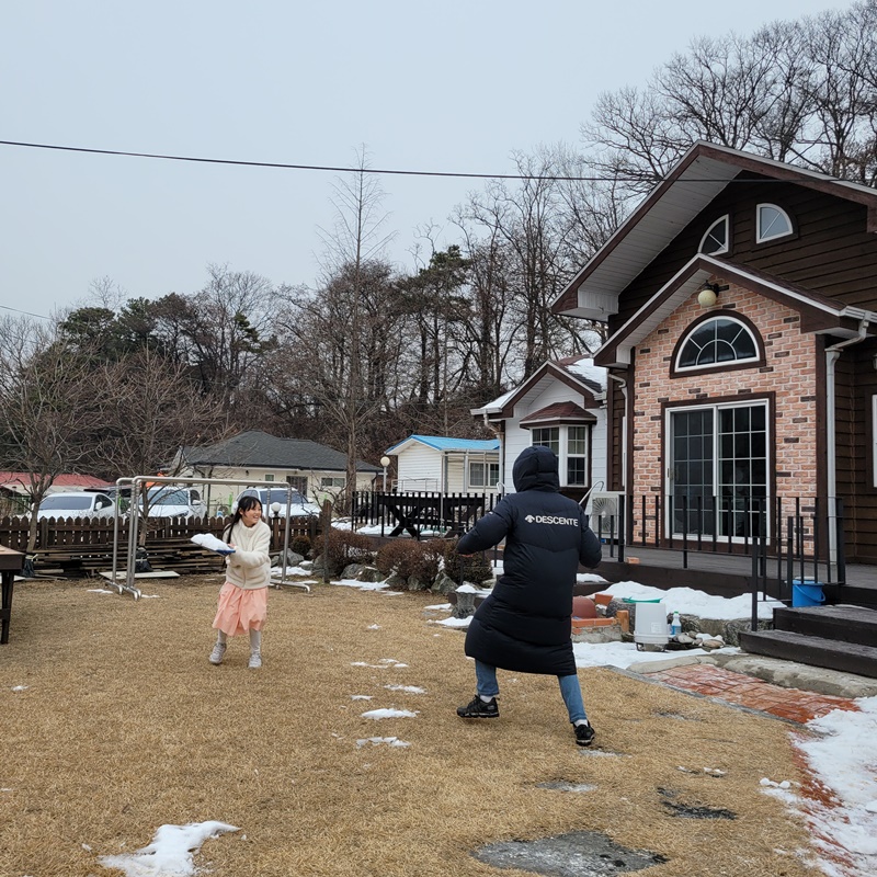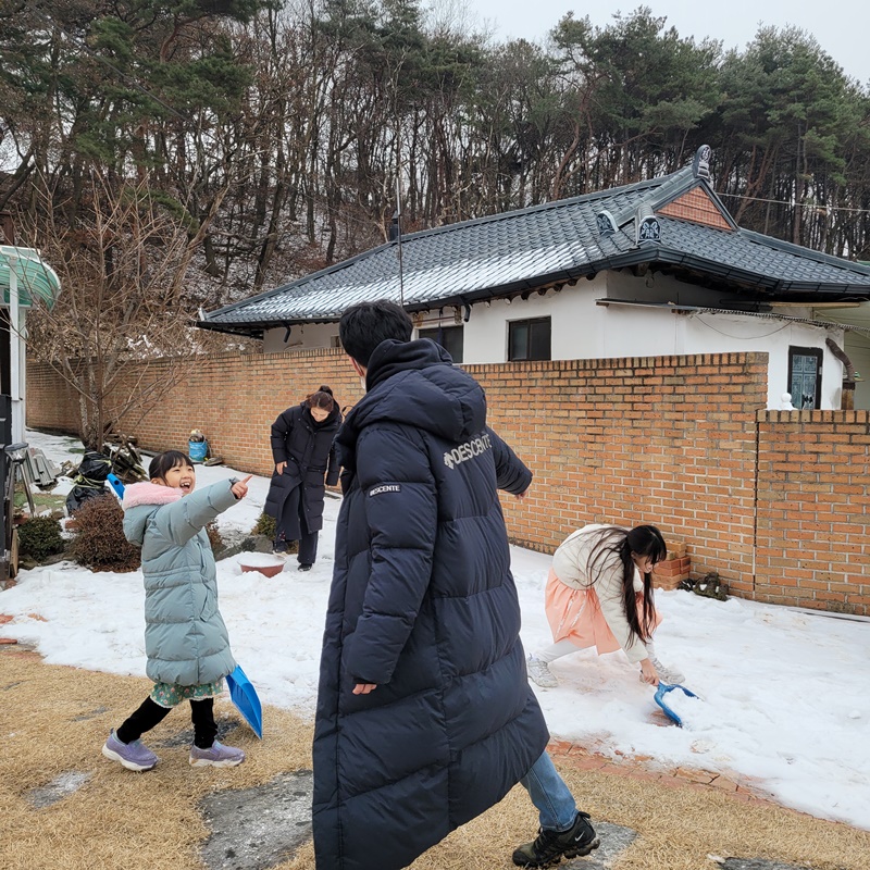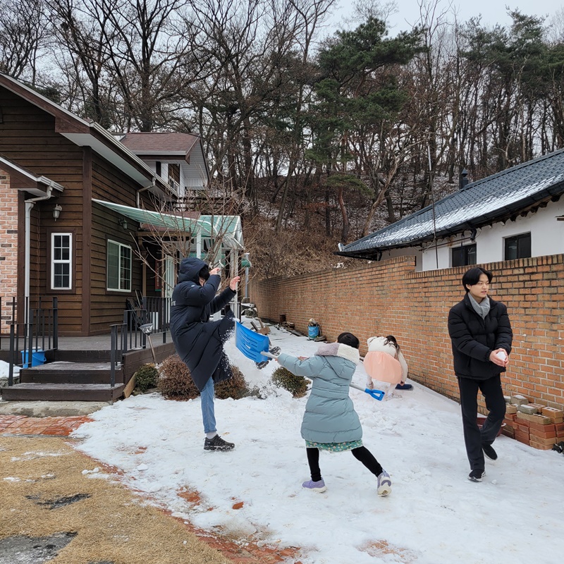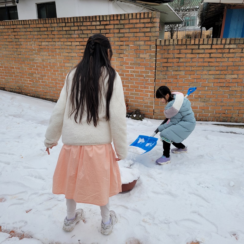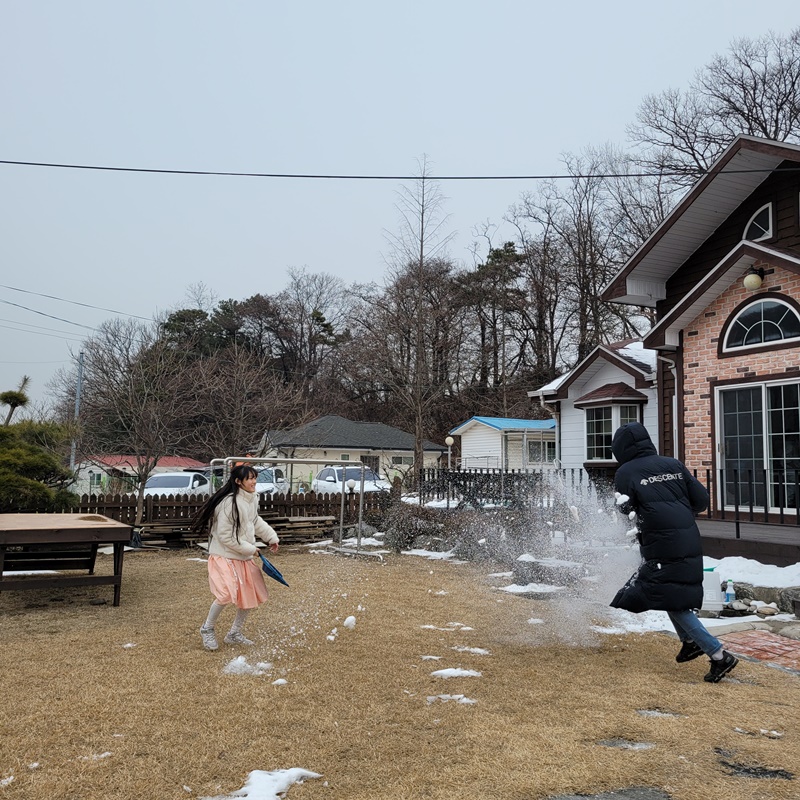 눈이 가득한 마당에서 아이들 완전 신났다.