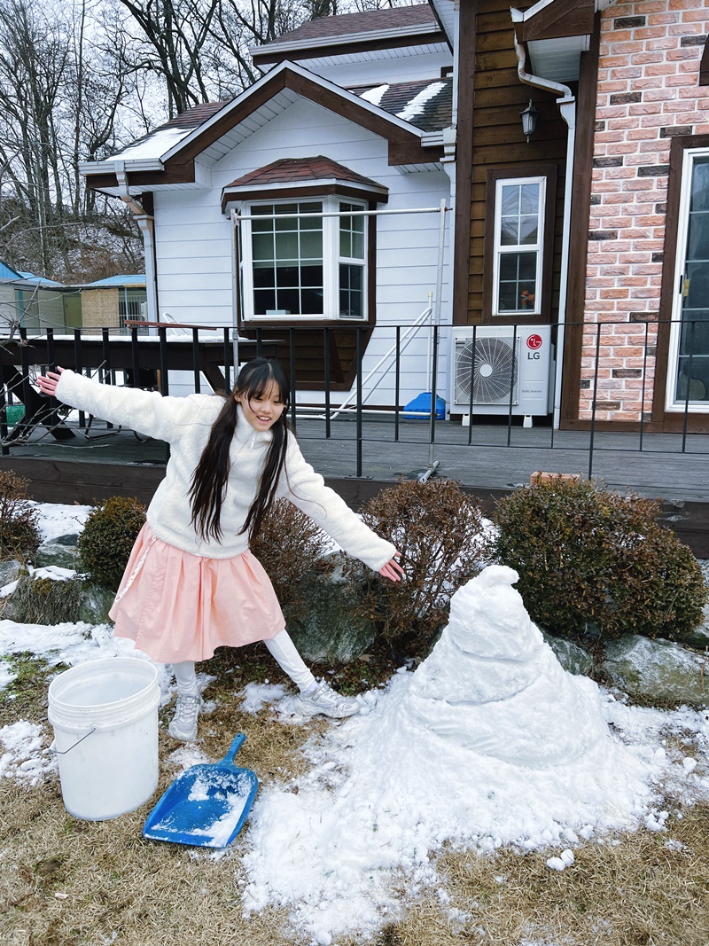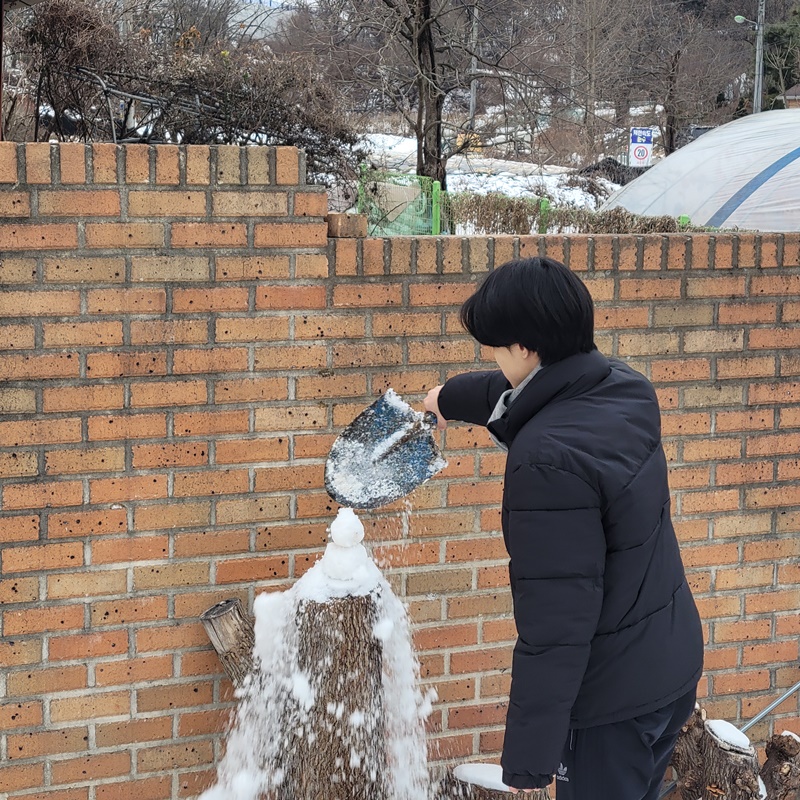 이렇게 열심히 눈을 퍼 모으더니....