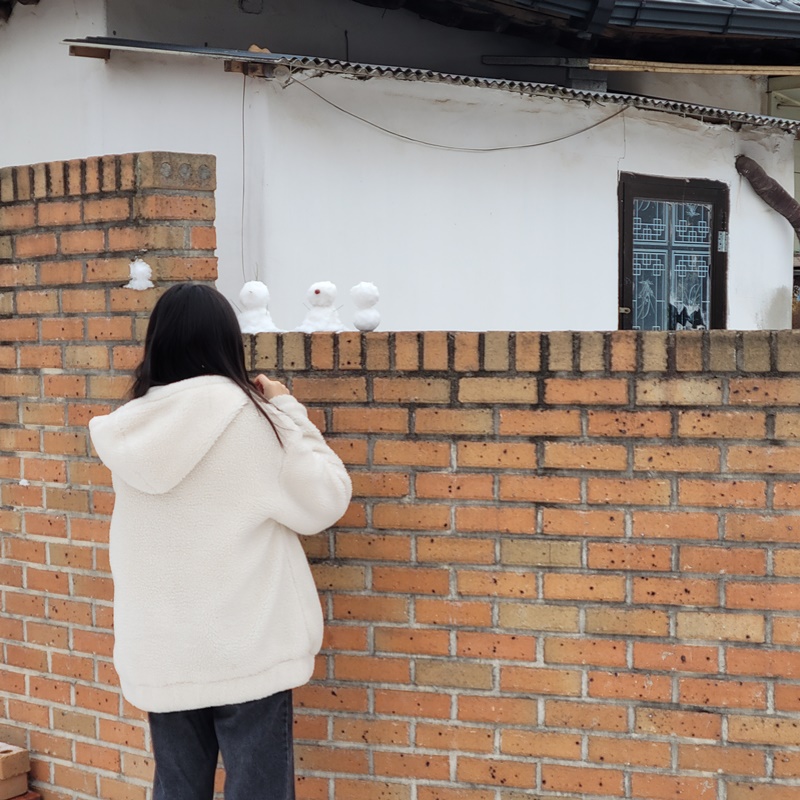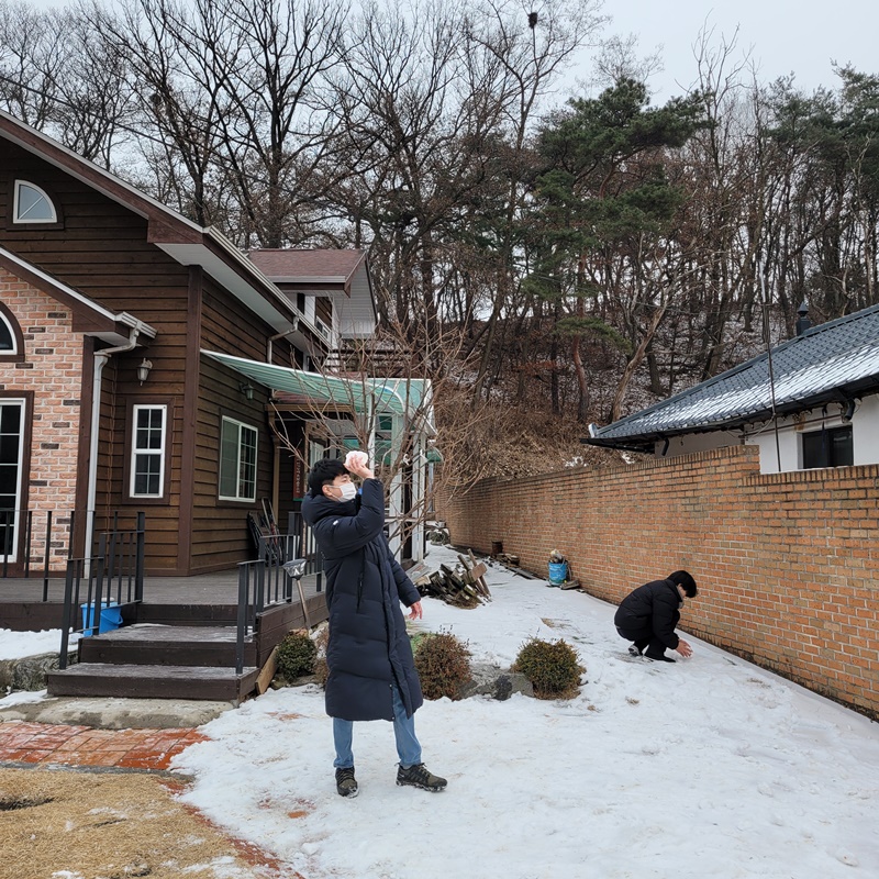 주변의 소음에는 아랑곳하지 않고 각자 조용히 자기 눈사람 만들기에 여념이 없는 순딩이들